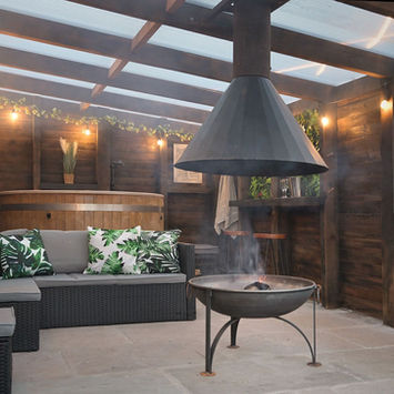 Premium Cabin with outdoor covered area including Hot Tub, Sofa, Firepit & Bar